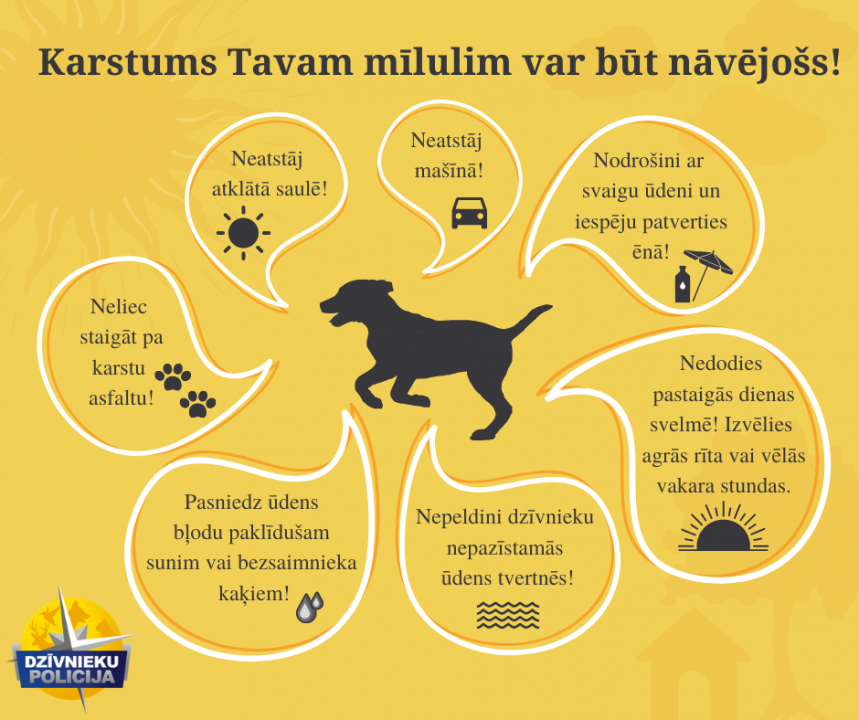 Atgādinām, ka pārkaršana saulē Jūsu mājdzīvniekam var būt nāvējoša.
